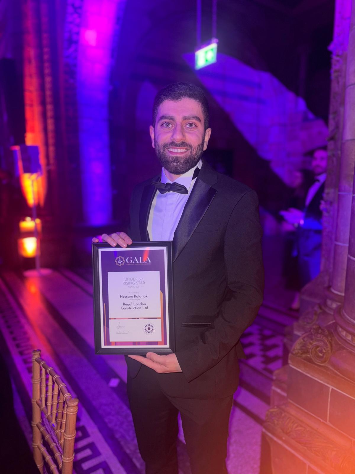 Hessam Kalanaki, Site Manager at Regal Construction, has been named one of the 30 Under 30 Rising Stars at the prestigious Considerate Constructors Scheme (CCS) Awards, recognising Hessam’s exceptional contributions, highlighting his leadership, innovation, and commitment to creating positive social and environmental impacts.