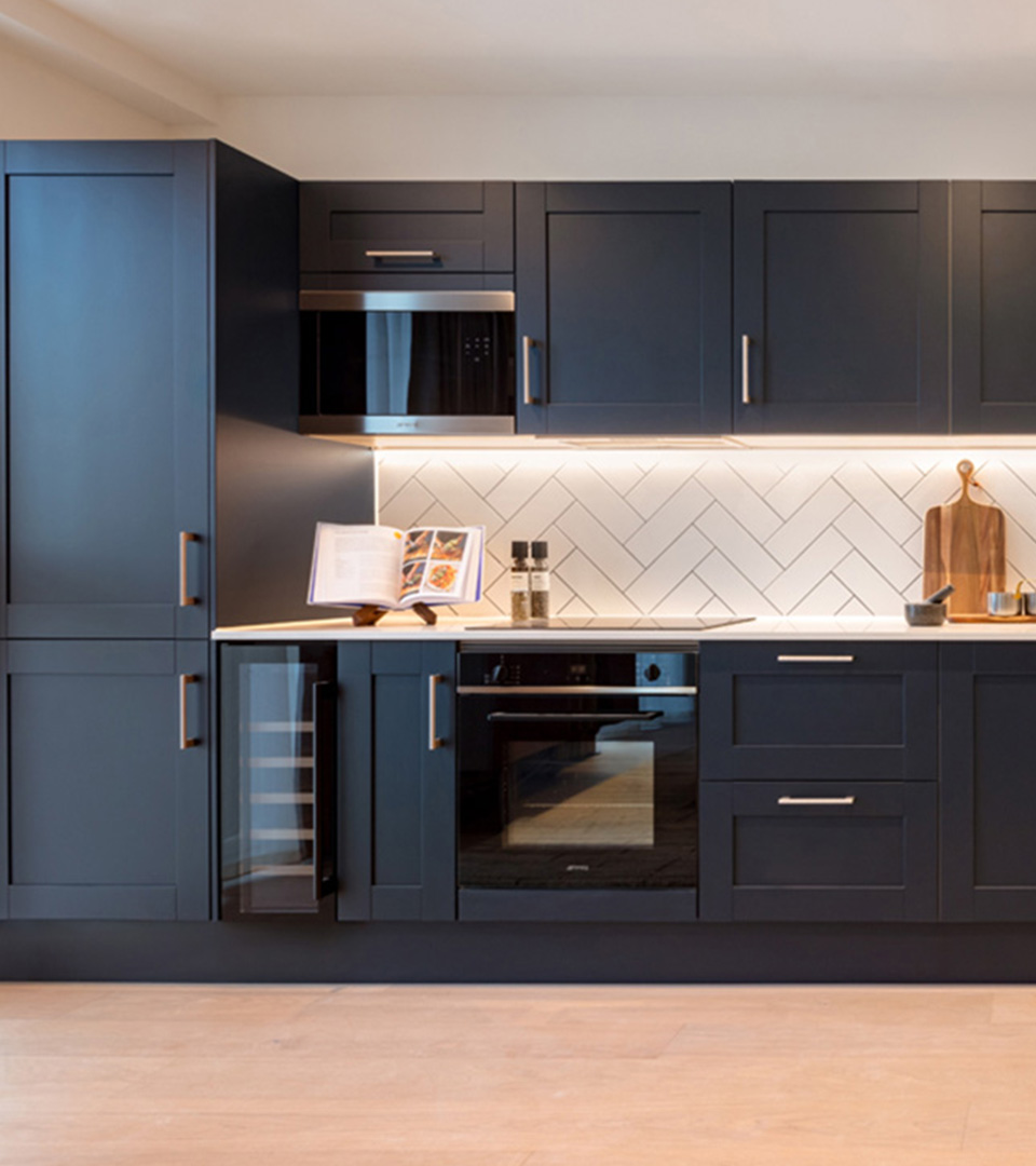 Fully fitted kitchens with stone worktops and integrated appliances overlook the bright and airy living spaces, while the bedrooms provide a tranquil sanctuary for rest and rejuvenation. Its elegant bathrooms feature clean lines, satin brass fixtures, and luxurious porcelain tiles.